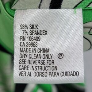 This Antonio Melani women's top captures an exquisite balance between elegance and fun with its vibrant green floral pattern. Made of 93% silk and 7% spandex, this spaghetti strap blouse boasts a silky, luxurious feel with a slight stretch for enhanced comfort. Designed for refined casual wear, this piece features a stylish bow accent at the front, enhancing its playful and feminine aesthetic. The lightweight fabric ensures breathability and ease of movement, creating a flattering drape. Meticulously crafted with attention to detail, this blouse measures 22 inches in length, with a 16-inch pit-to-pit measurement, fitting a size small perfectly. The overall construction demonstrates the sophistication that Antonio Melani is known for. Dry clean only, as indicated, to maintain the fabric quality. Made in China, this top radiates charm and versatility, easily adaptable for a variety of occasions. Pair it with tailored pants or jeans for a chic ensemble.