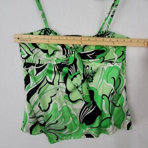 VTG Antonio Melani Green & Black Stretch Silk Floral Paisley Cami Top Size Small