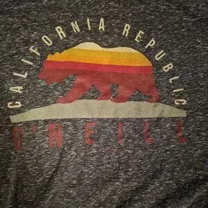 Stylish O'Neill shirt with a bear on the front that says California republic on it. light weight and perfect for the summer time. worn only once or twice