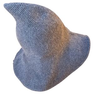 Fun knitted grey witch/wizard hat perfect for Halloween, Hogwarts-inspired outfits, cosplay, or cozy fall styling. A great statement accessory for themed events or seasonal wear.