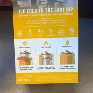 Slim Can Cooler- Keeps drinks cold for 12 hours. Fits 12oz slim cans. No sweat design. Works with all 12oz slim cans.