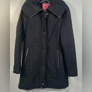 Kate Spade Black Quilted Herringbone Hooded Jacket