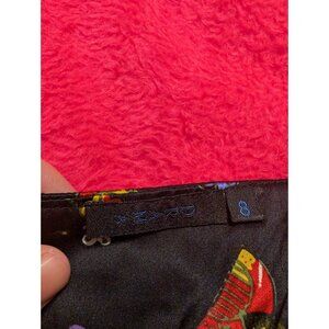 Vintage 90s DRAMA Silk Panel Skirt NWT 8 Black Kimono Fan Print Deadstock