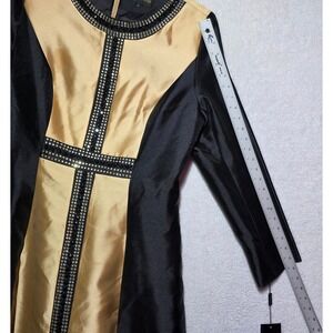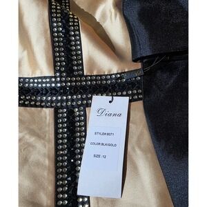 Diana Black Gold Rhinestone Studded Evening Dress Long Sleeve Size 12 NEW