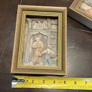 Set of 3 shadow box art. Front glass or plexi has fallen into frame. Cute interesting art pieces.