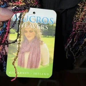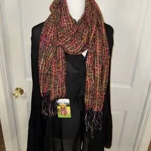 Mucros Weavers multicolor, handwoven-style scarf with fringe. 14” x 73”