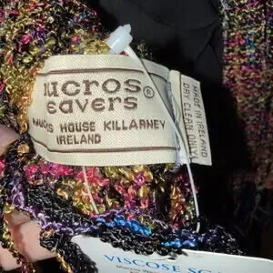 The Mucros Weavers multicolor handwoven-style scarf with fringe is a stylish accessory for women. This 14" x 73" scarf features a unique handwoven design in a vibrant multicolor palette. The fringe accents add a trendy touch to the overall look, making it a versatile and fashionable piece to add to any outfit. Perfect for keeping warm in style, this scarf is a must-have for any fashion-forward woman.