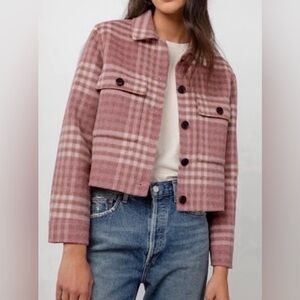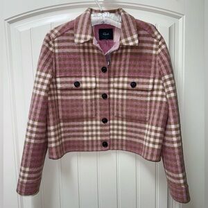 NEW NWOT WOMENS SMALL (bust 40”) STEFFI PLAID WOOL BLEND JACKET PINK PLAID