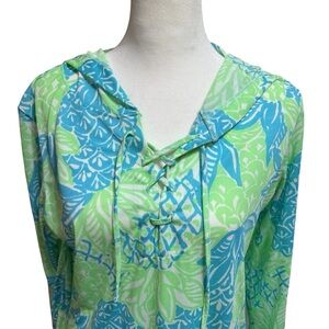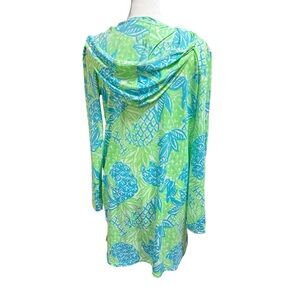 HIHO Green Turquoise Pineapple Print Hooded Tunic Swim Cover Up Small #57