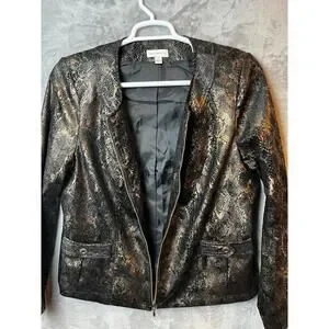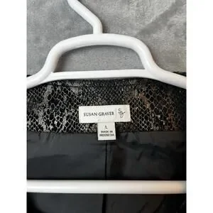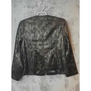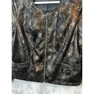 Susan Graver Womens Jacket Size Large SnakeSkin Print Full Zip Lined Metallic