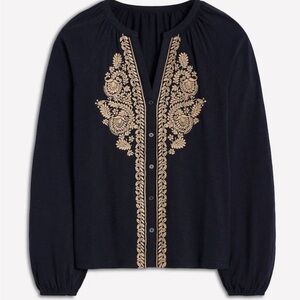 Boden Navy Blouse with Cream Embroidery Blouse
