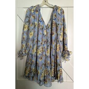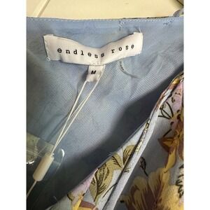 NWT ENDLESS ROSE Women's BOHO Chiffon ROMPER Lt Blue Floral Ruffled Lined Size M