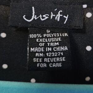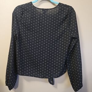Justify Women's Size S Black Polka Dot Tie Front Blouse