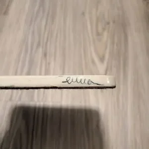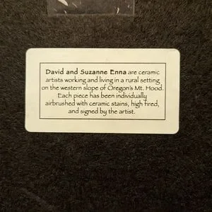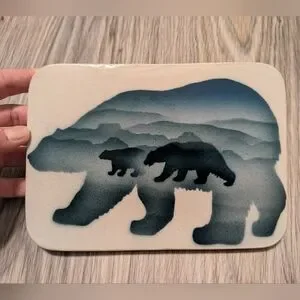 Lovely hand painted ceramic tile by David and Suzanne Enna. Felt backing with a hook to hang. Mountain scenery with a bear and her cubs in shades of blue. From a clean and smoke free home.