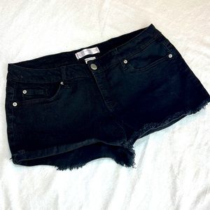 NOBO short for No Boundaries super cute nice looking black jean cutoff shorts not faded so they look darker and nice but they still have the frayed bottoms giving them a more raw edgy look. Short & sexy.