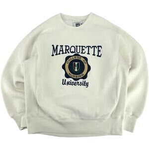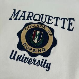 Vintage 90s Men's White Embroidered LEE Marquette University Golden Eagles College of Nursing Reverse Weave Crewneck Sweatshirt Sz L