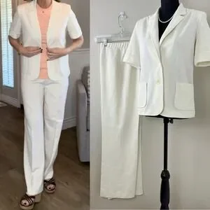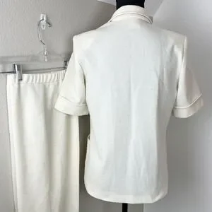 Retro Vintage Power Suit White 70s Wide Leg Pantsuit Short Sleeve Jacket Blazer