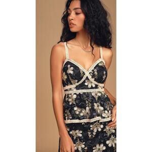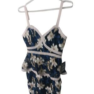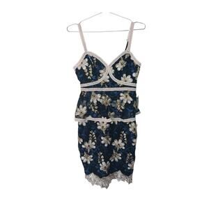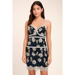 New Lulus XS Navy Blue Floral Embroidered Lace Trim Mini Dress Party