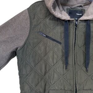 Hurley Men's Quilted Zip Hoodie Jacket XS Olive Green Brown Surf Skate Style