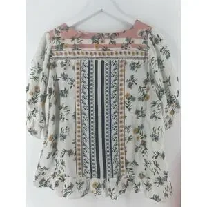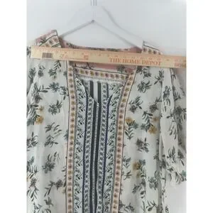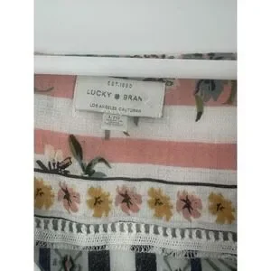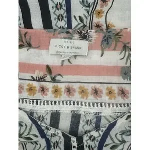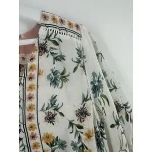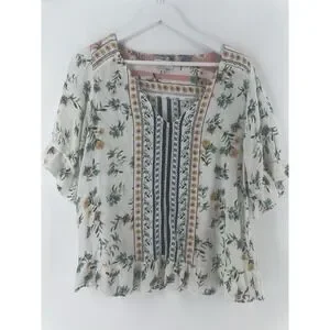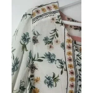Lucky Brand Womens Floral Print Y2K Boho Peasant Flutter Blouse Size L T1000