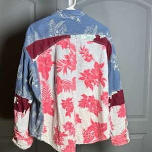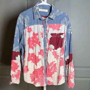 We The Free Linen Floral Patchwork Shirt with Distressed Seams SZ M