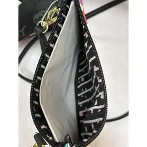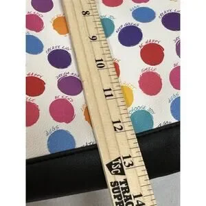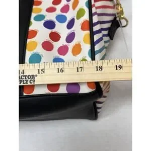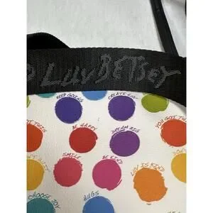 The NWOT Betsey Johnson Polka Dot Weekender is a stylish and colorful duffle bag perfect for travel, casual wear, or work. Made from faux leather with a polka dot pattern and leopard character accents, this large rectangular bag features a zip closure, black hardware, and double handles. It includes a small purse, a detachable strap, and other strap accessories, making it a versatile and lightweight option for on-the-go women. The Betsey Johnson brand and limited edition design add a touch of sophistication to this fun and fashionable travel luggage duffel.