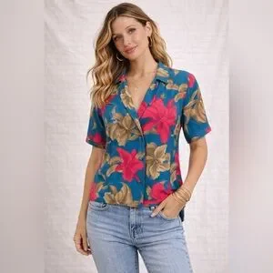 Vintage Paul Stanley 80s Women’s Size 14 Silk Top Floral Retro 90s Butter Mom