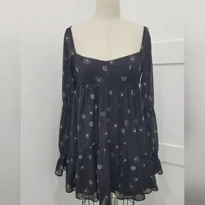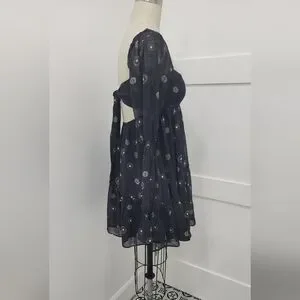 Urban Outfitters Black Lanette Chiffon Long Sleeves Babydoll Mini Dress Size S