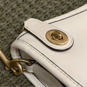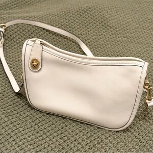 Coach Swinger 20 bag with shoulder strap and chain to wear as a shoulder or crossbody bag. Soft leather in good condition. Interiors has some stains and there are a few hairline marks on the surface and hardware. See pictures