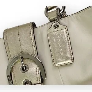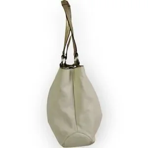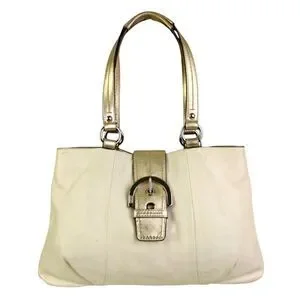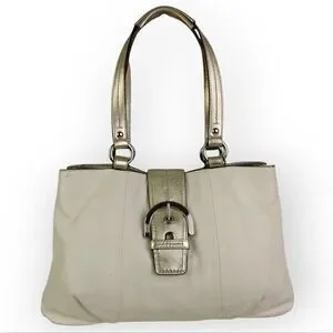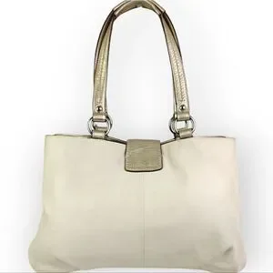 VTG COACH PEARL OFF WHITE GOLD GENUINE LEATHER SHOULDER BAG HANDBAG PURSE TOTE