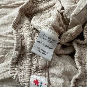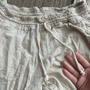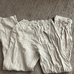 Comfortable cream pants with elastic waistband. Relaxed fit for casual wear.
