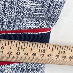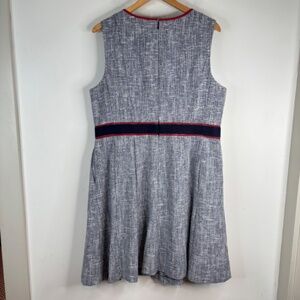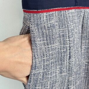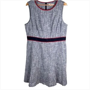 Features: Fit & Flare, Sleeveless, Knee length, Blue White Woven Tweed, Red Trim, Fully Lined, Zip closure