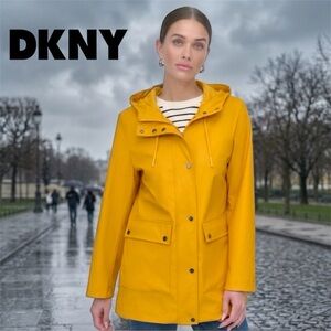 DKNY Yellow Nautical Waterproof Hooded Rain Jacket Coat - DL5MPW27 - Large