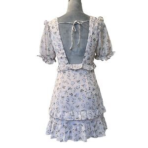 Sweet Spot Women's Floral Tiered Mini Dress Size 8 Blue Party V-Neck Fancy Love