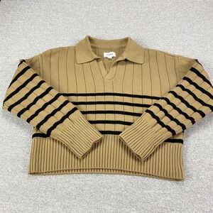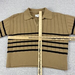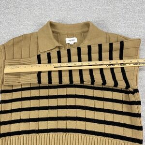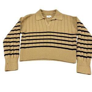 Pistola Tan Noir Stripe Ribbed Cotton Polo Sweater Small