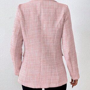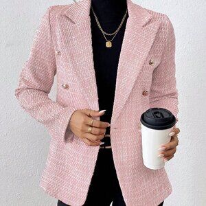Baby Pink Elegant Women's Plain Color Double Breasted Long Sleeve Suit Jacket