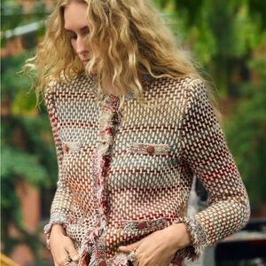 Veronica Beard Sariyah Knit Jacket Fringe Crest Buttons Current Style Size Small