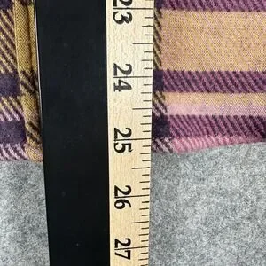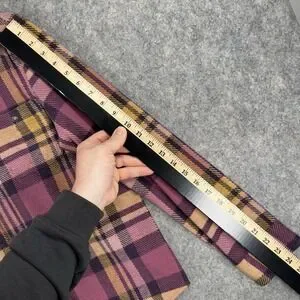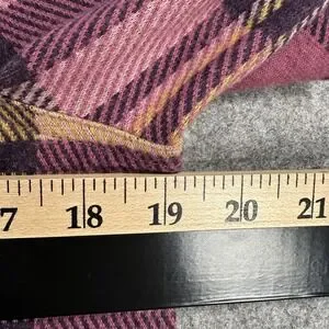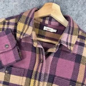 Color: Purple plaid with mustard yellow and dark navy accents.