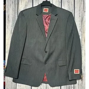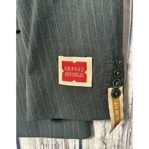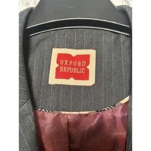 Oxford Republic Mens 46R Blazer Gray Two Button Single Breast Pinstripe Lined