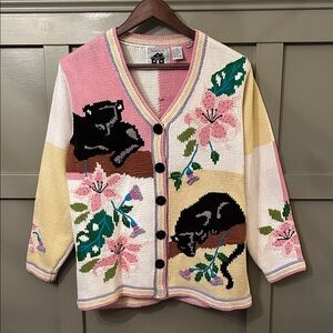 Black panther and floral pattered cardigan sweater