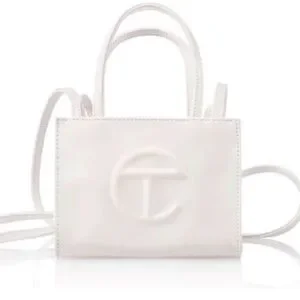 Telfar White Mini Shopping Bag and small matching belt
