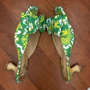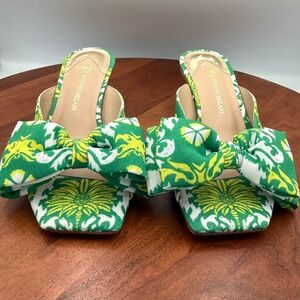 Antonio Melani Alora Royal Palm Bow Slide Sandals Kitten Heel Mule Womens 6.5