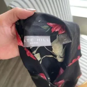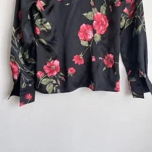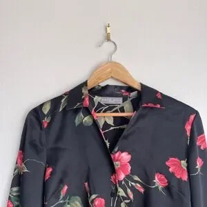 Vintage 90s Kate Hill Petite 100% Silk Floral Print Long Sleeve Blouse
