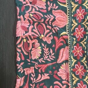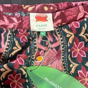 NEW - Stylish pants featuring a vibrant floral pattern. Dominant colors are pink and black with intricate designs.