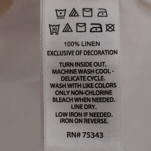 Features: White – 100% Linen – Split V-Neck – Rolled Sleeves – High-Low Hem – Multicolor Trim – Lightweight – Pullover