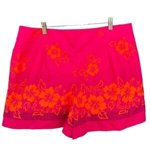 Vintage Hilo Hattie Hawaiian Floral Wrap Skort. Women’s size XL. Bright and colorful Pink and Orange with a subtle Ombre pattern. Hawaiian hibiscus flower pattern. Button closure, skirt opens completely. 100% cotton. Great preowned condition!