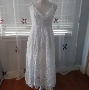 Charlotte Russe midi dress features spaghetti strap and v neck. White color, dress features lace and high waist. Size S. New with tag 100% Polyester
