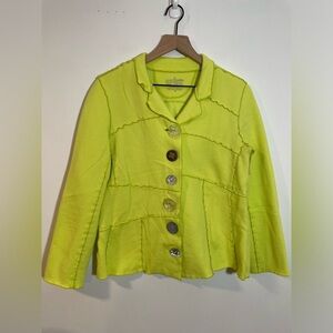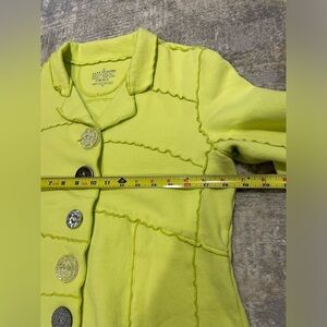 Neon Buddha Yellow Green Mix Buttons Cotton Sweater Jacket Size Medium