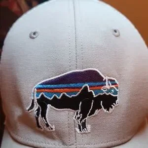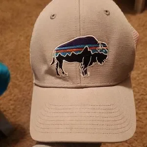 Patagonia White And Gray Mesh Cap With Colorful Buffalo