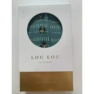 Adorable Lou Lou & Co two-piece bamboo top and bottom set in the Tyler print. Features a soft seafoam color-way with white dash and line detailing for a modern, neutral look. Made from Lou Lou & Co's signature soft, stretchy bamboo fabric that is gentle on baby's skin. Perfect for everyday wear, lounging, or gifting.
